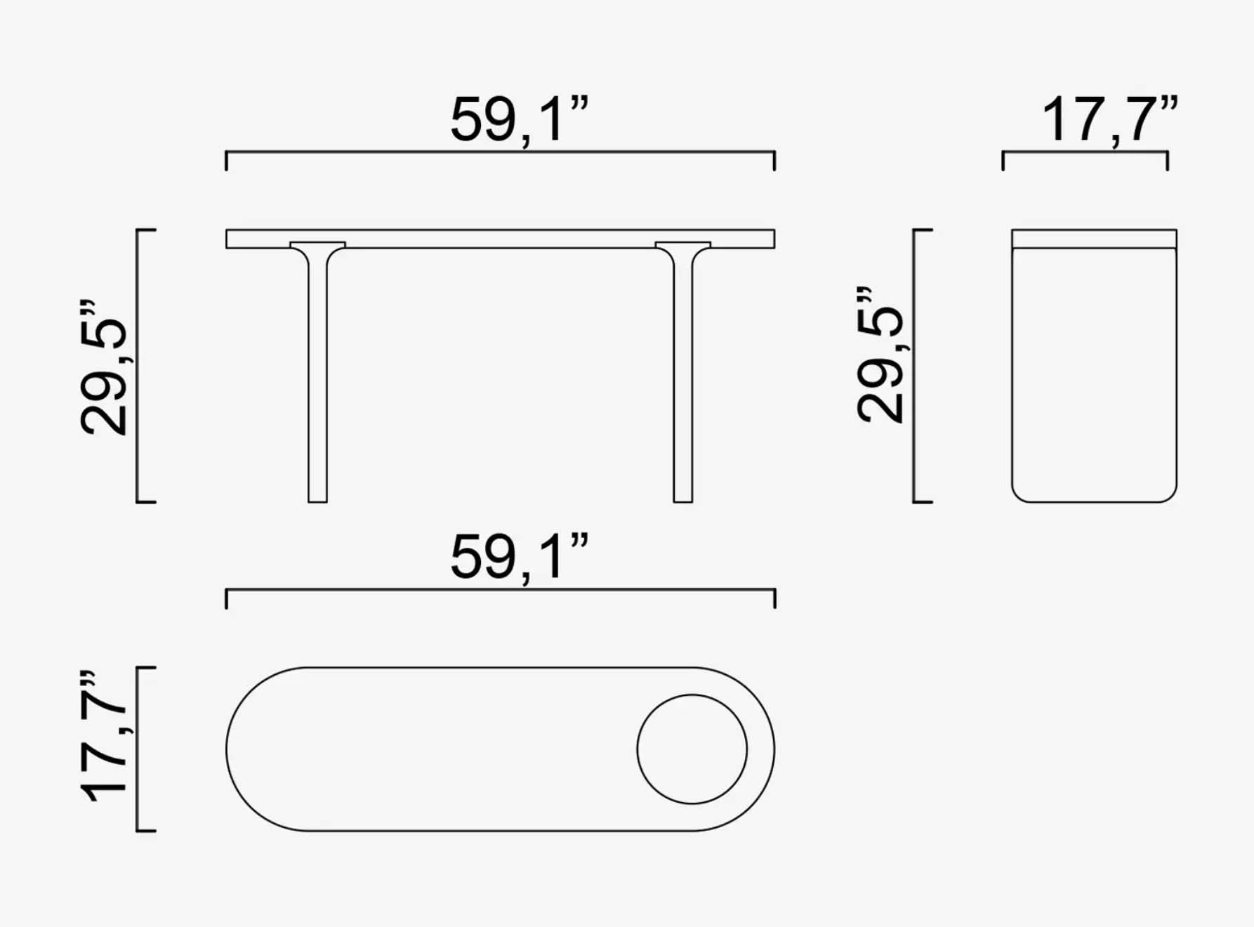 The Orbix Console by Madison & Brooks is a study in sculptural simplicity and mid century modern elegance. Crafted with a black oak frame and softened edges, its silhouette is both welcoming and refined. A distinctive round travertine detail set into the surface adds a luxurious focal point subtle yet undeniably artful.