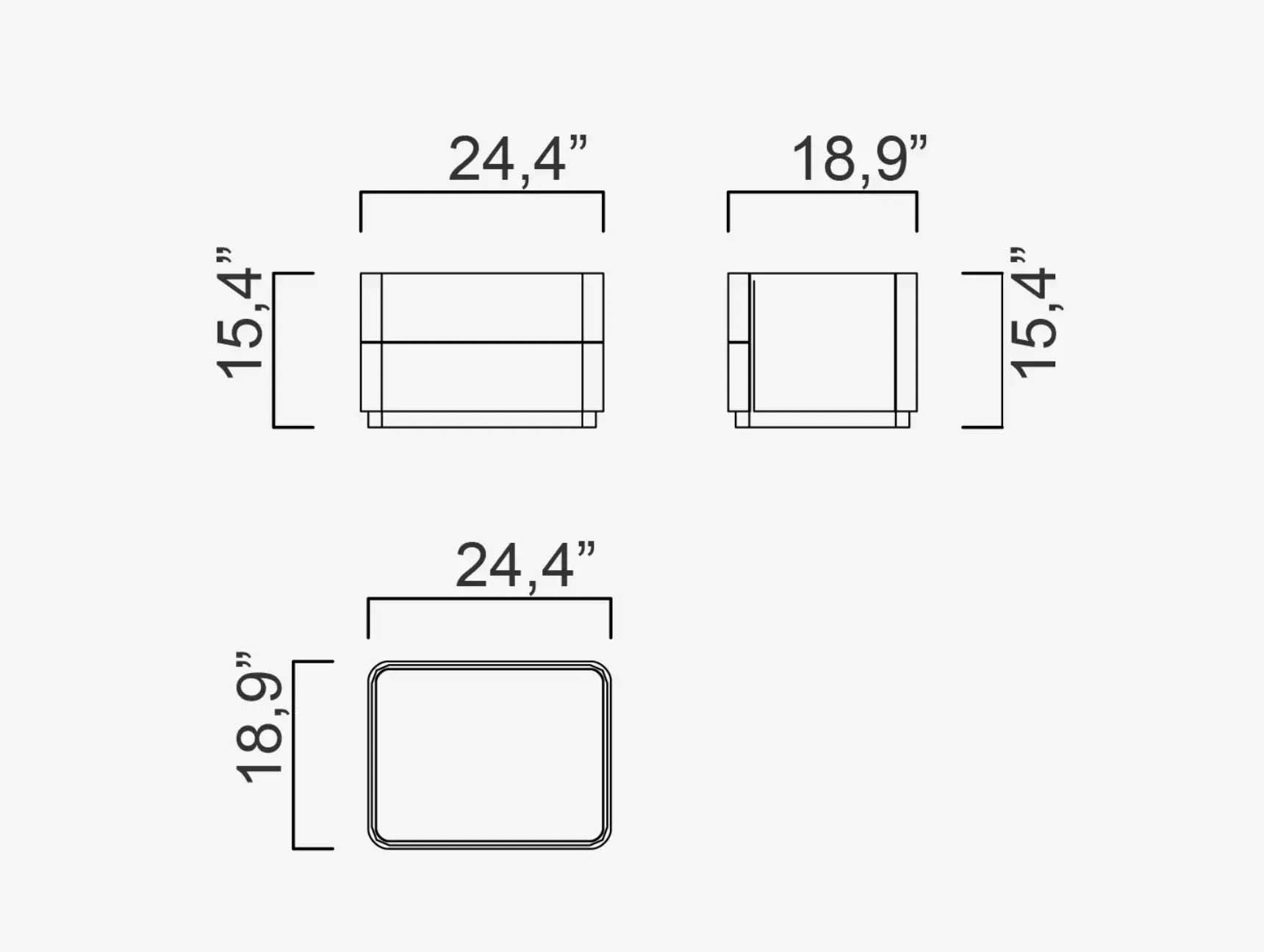 | Dimensions | 24.4 x 18.9 h:15.4, 21.7 x 13 h:19.7 |